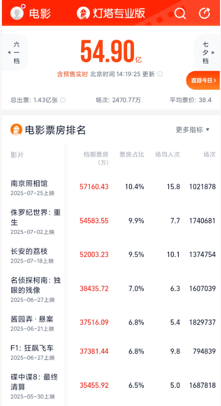 上证报中国证券网讯(记者 杨翔菲)据灯塔专业版,截至7月29日午间,《南京照相馆》暑期档内档期票房(含预售)已超过《侏罗纪世界:重生》,登顶暑期档票房榜。群益证券表示,《南京照相馆》上映后口碑优异,后续票房或将进一步超预期。