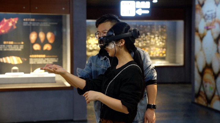 2025年12月31日起,大型海洋实物融合MR/VR科普展“你好,海洋——MR沉浸式海洋科普展”在龙岗文博展览馆开展。与以往展览不同,这场展览的核心“讲解员”是一副MR(混合现实)眼镜。观众在观赏超500件真实化石、贝壳、鱼类标本的同时,通过MR技术,能够亲眼看见这些生物“回到”它们原本的生态环境中,实现“看得到标本,也看得见生命”的双重体验,展览将持续至2026年8月31日。