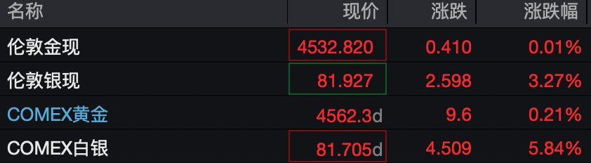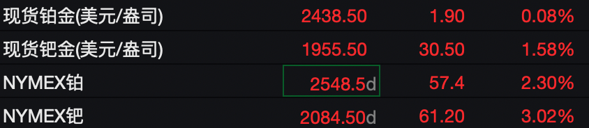 除了白银外,黄金、铂金、钯金等亦均有不同程度上涨。