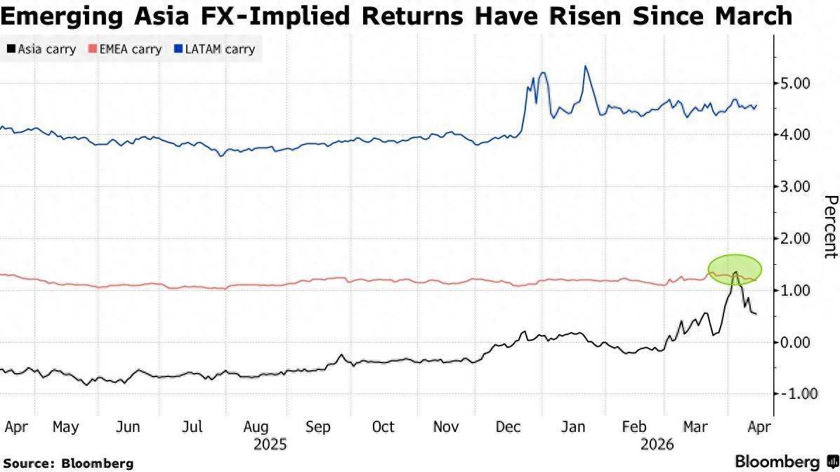 澳新银行亚洲研究主管吴坤表示:“较高的隐含收益率反映市场预期各国央行可能需要收紧政策。虽然从套利角度看这增强了吸引力,但地缘政治环境的不确定性意味着,受新闻头条驱动的现货价格每日波动可能轻易抵消任何收益优势。”